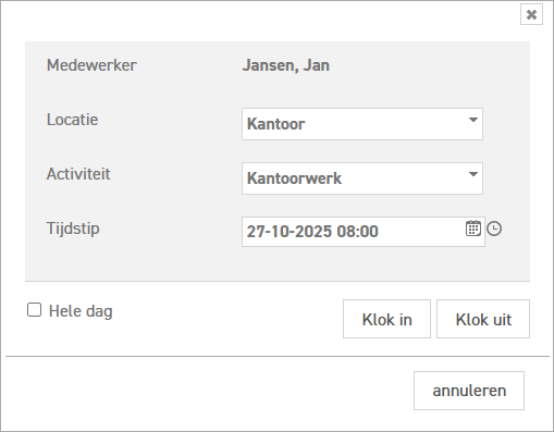 Tijdstip: Vul hier de begin- of eindtijd in van het klokmoment met de goede datum