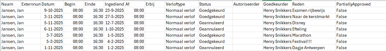 Reden: Als een medewerker een reden heeft ingevuld bij de aanvraag, kan je deze hier terugvinden