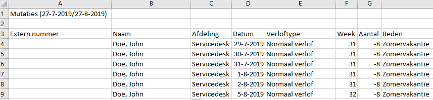 Verloftype: Hier vindt je het gebruikte verloftype van de mutatie terug