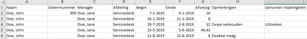 Afdeling: Als er binnen Vrijedagen afdelingen zijn aangemaakt kan je hier terugvinden in welke afdeling de medewerkers zitten, dit is handig als je de medewerkers bijvoorbeeld wilt sorteren op afdeling