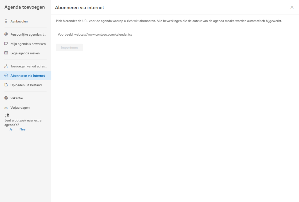- Plak de gekopieerde link in het veld en klik op Agenda toevoegen.