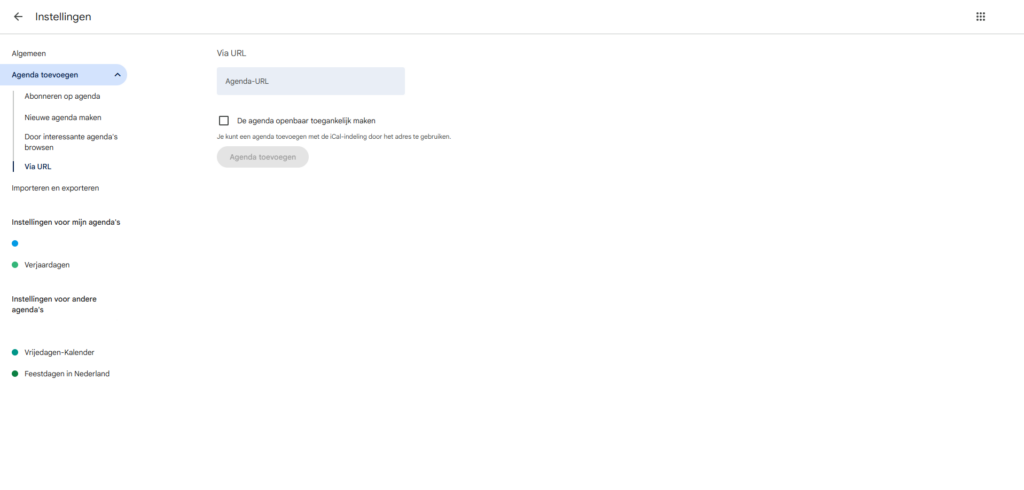 - Klik aan de linkerkant op het plus-icoon naast Andere agenda's en kies Via URL.